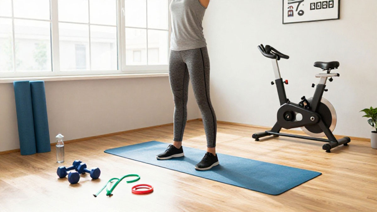 Tidak perlu membeli peralatan mahal atau besar. Pilih alat yang sesuai dengan jenis latihan Anda, seperti matras yoga, dumbbell ringan, resistance band, atau kettlebell. Peralatan ringkas membuat ruang tetap rapi dan meminimalkan gangguan saat latihan.